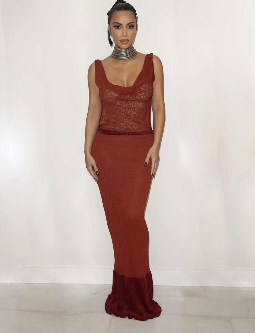 For Thanksgiving, building your look around one luxurious texture, like satin, metallic knit, or silk, instantly catches the light. Pair it with an earthy fall hue and a fluid silhouette for effortless, holiday-ready slay.