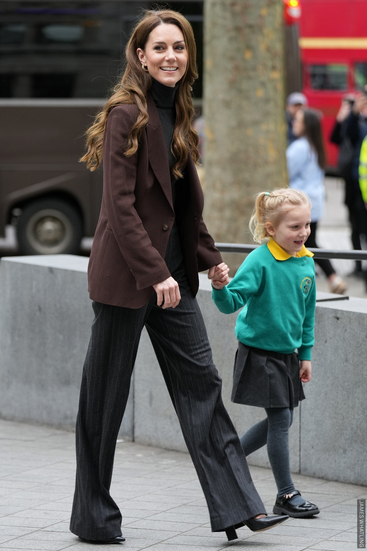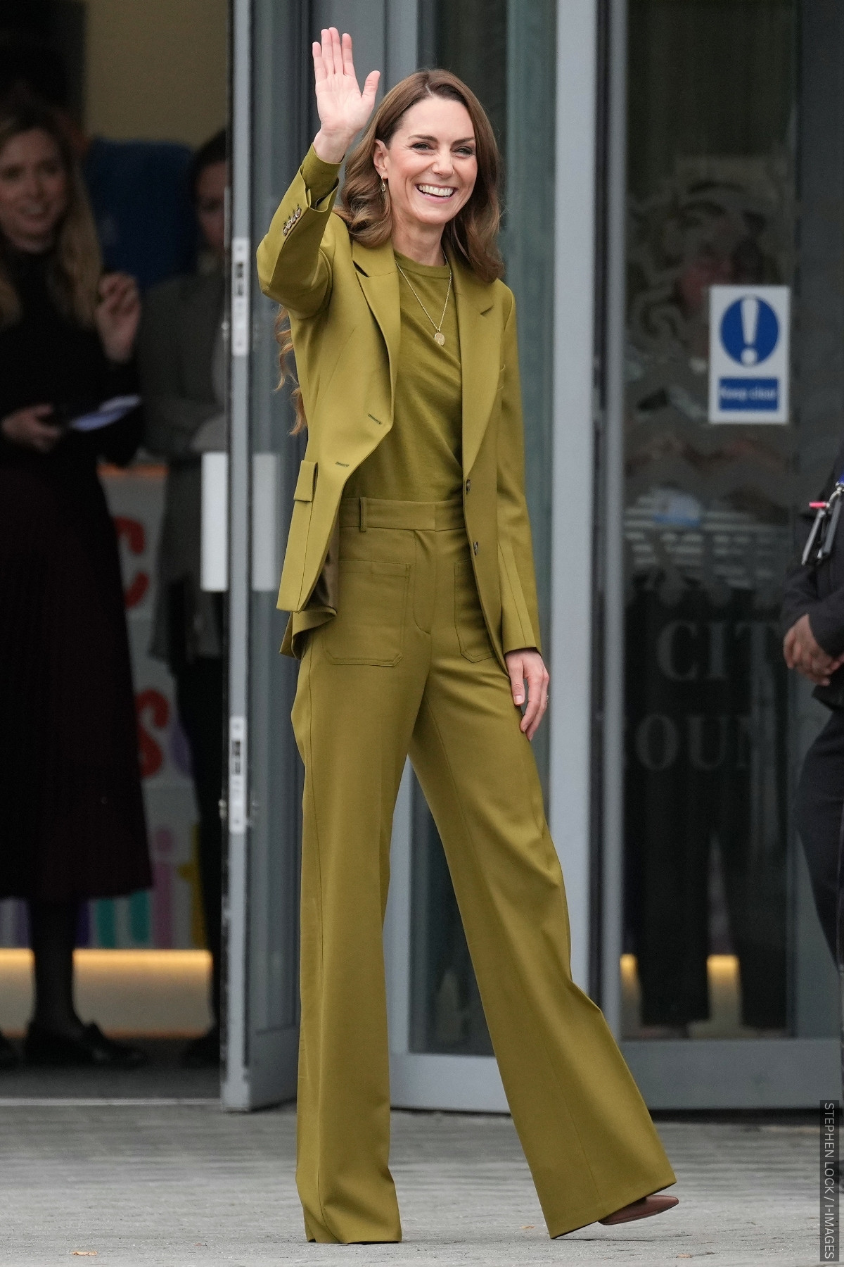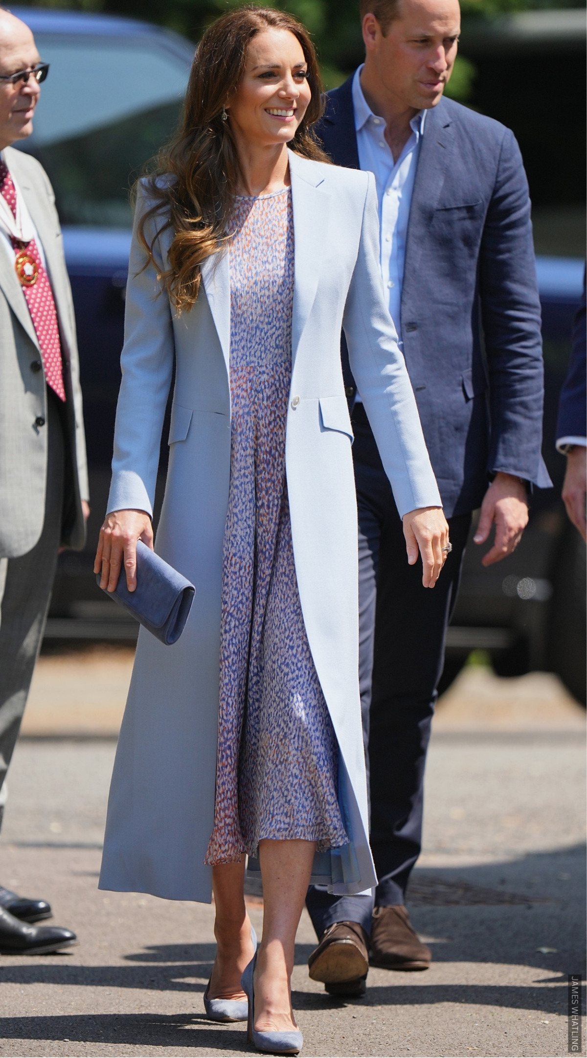 I had expected the Princess to wear tonal olive shoes with this suit—so the tan was a nice surprise.