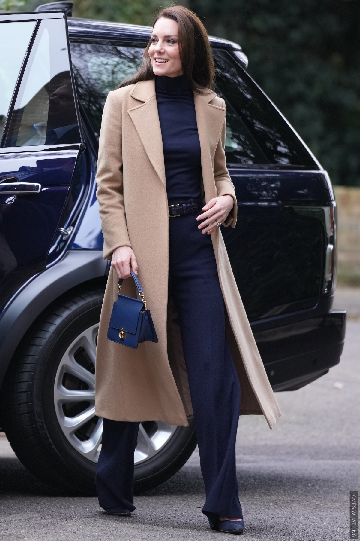 We’re so used to Kate’s tone-on-tone layering that it felt like a refreshing change when she topped a navy ensemble with a camel coat during a 2023 visit to a nursing home.