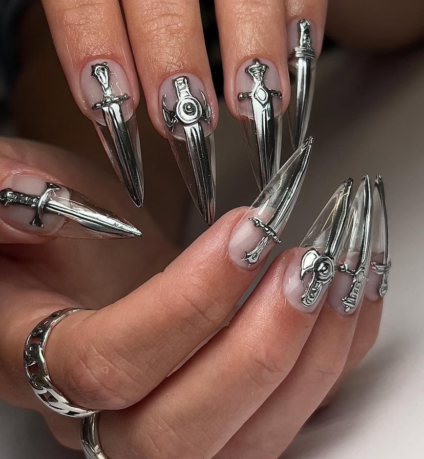 Anything can be a nail motif — even a collection of sharp, idiosyncratic daggers.