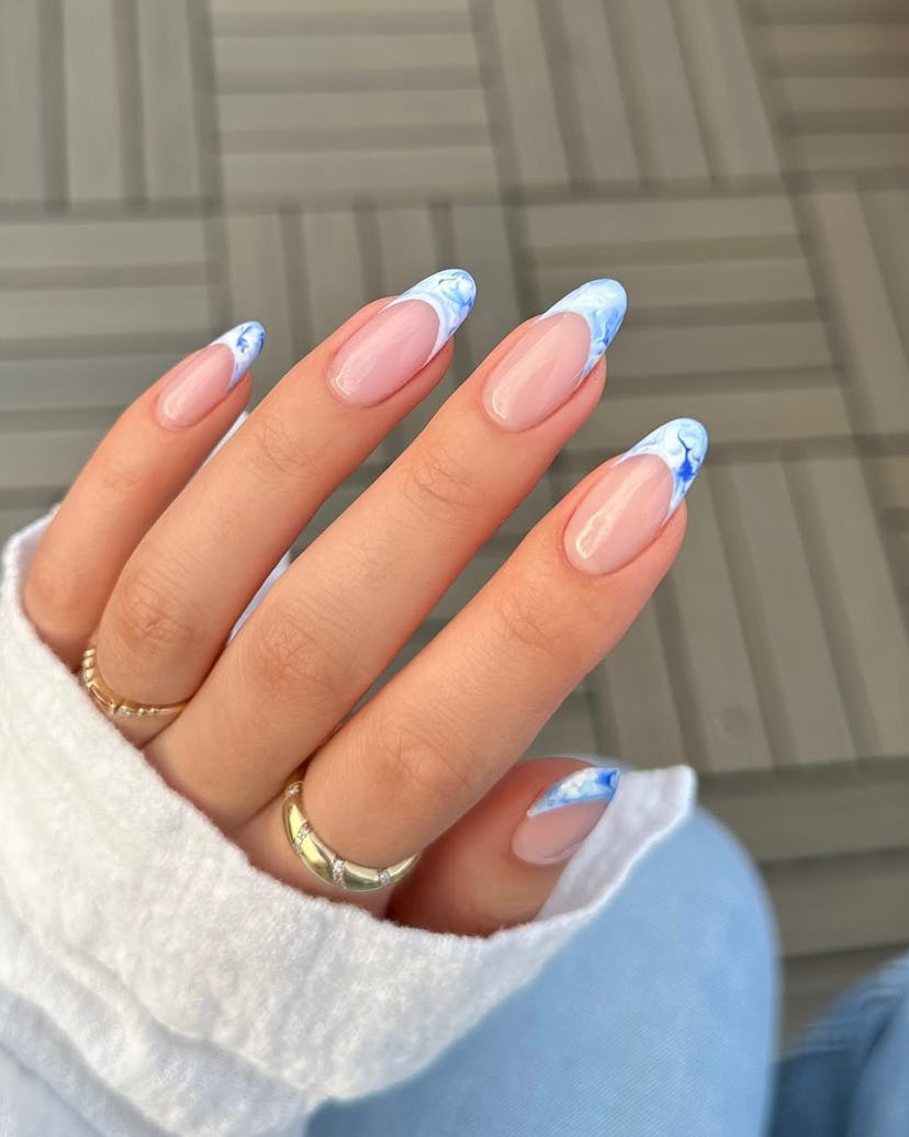 Baby blue takes on a new meaning when the shade is used to create a teeny-tiny French tip.