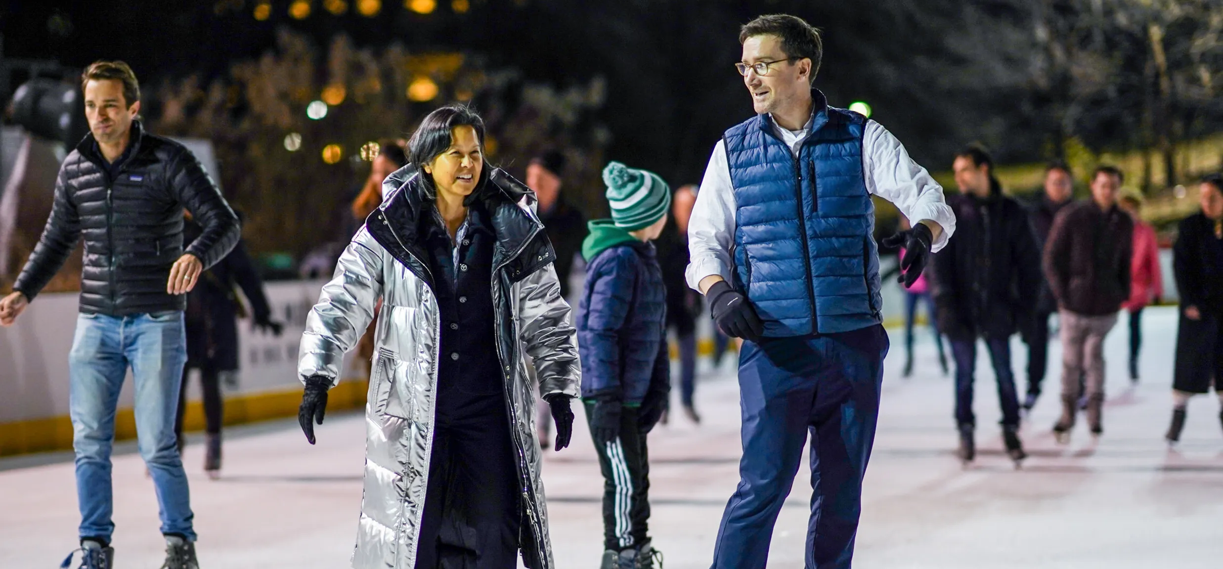 Skating at Klyde Warren Park is holiday magic wrapped in a chic, urban setting. The outdoor rink sits beneath towering skyscrapers, blending city energy with seasonal charm. Beginners will find it easy to navigate, while seasoned skaters can glide, swirl, and freestyle. After a few laps, warm up with hot drinks or snacks from the park’s many food vendors. Arriving mid-afternoon gives you great lighting and fewer crowds.