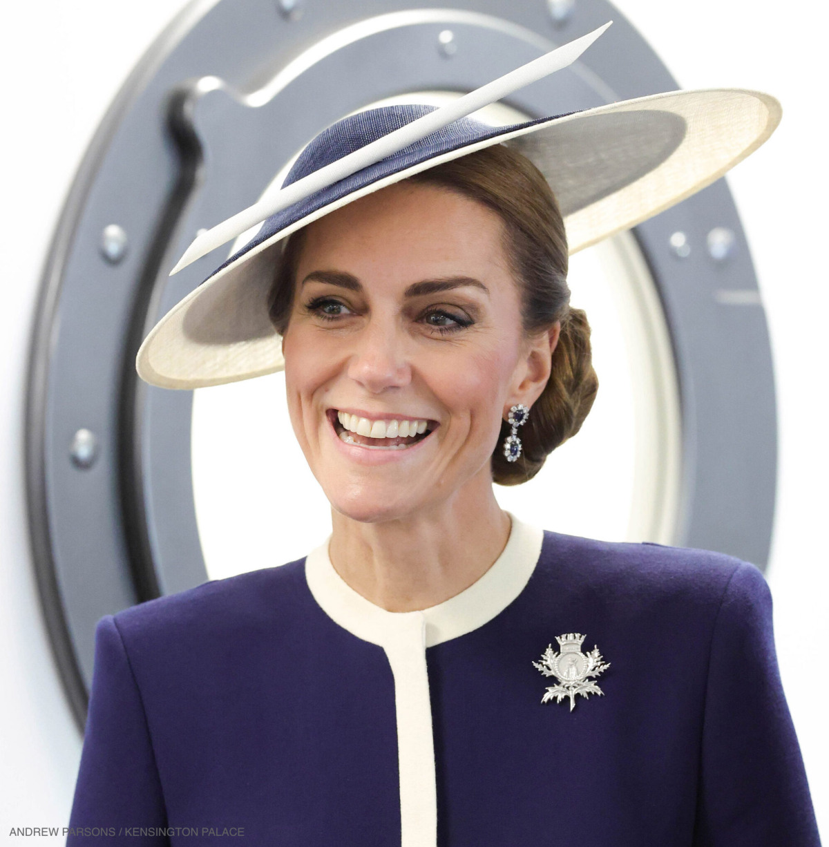 You might remember this piece from earlier in the year. Kate wore the brooch to the official naming ceremony of HMS Glasgow in May (she is the ‘sponsor’ of the ship).