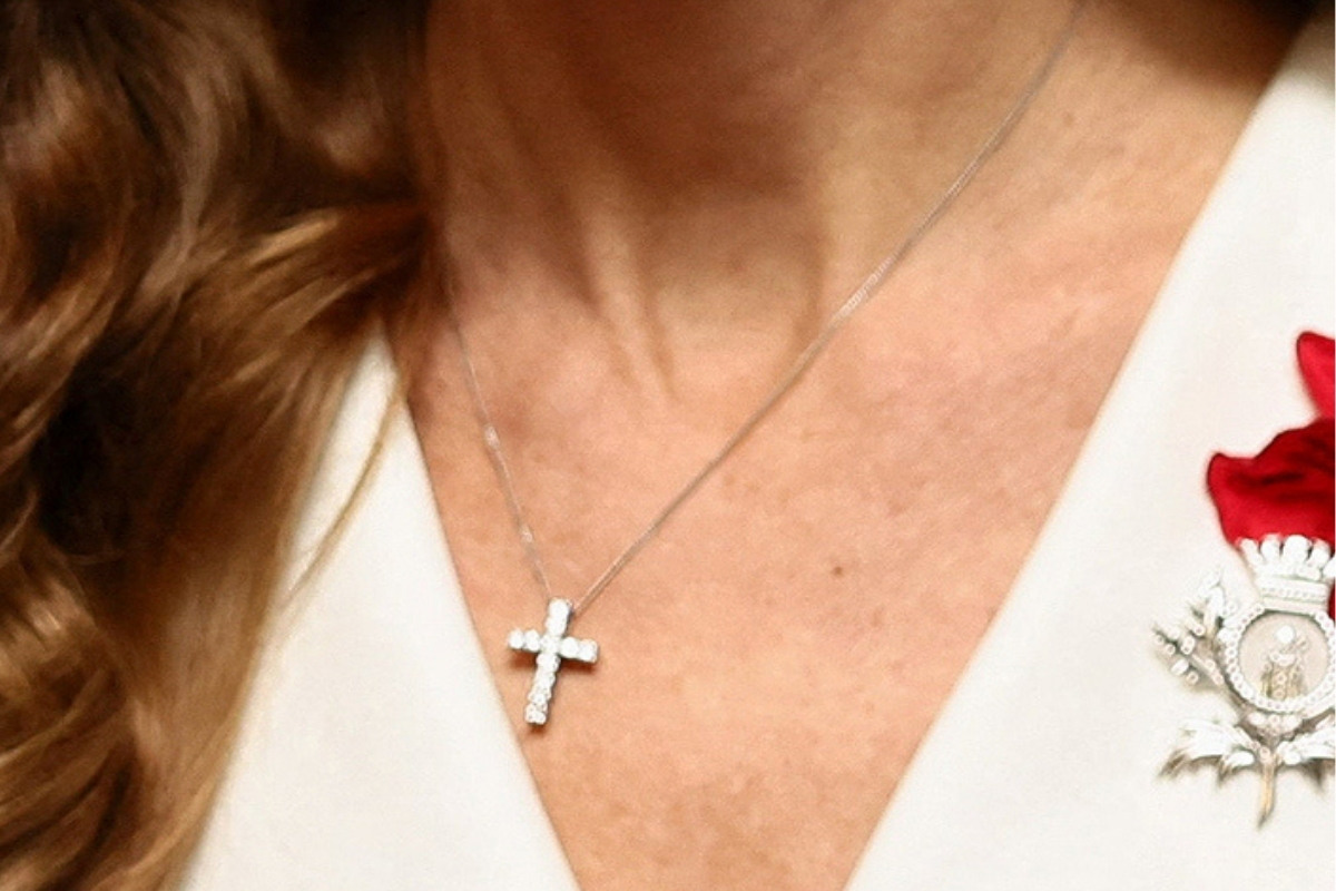 The Princess also accessorised with a silver-coloured cross pendant that she’s owned for more than a decade.