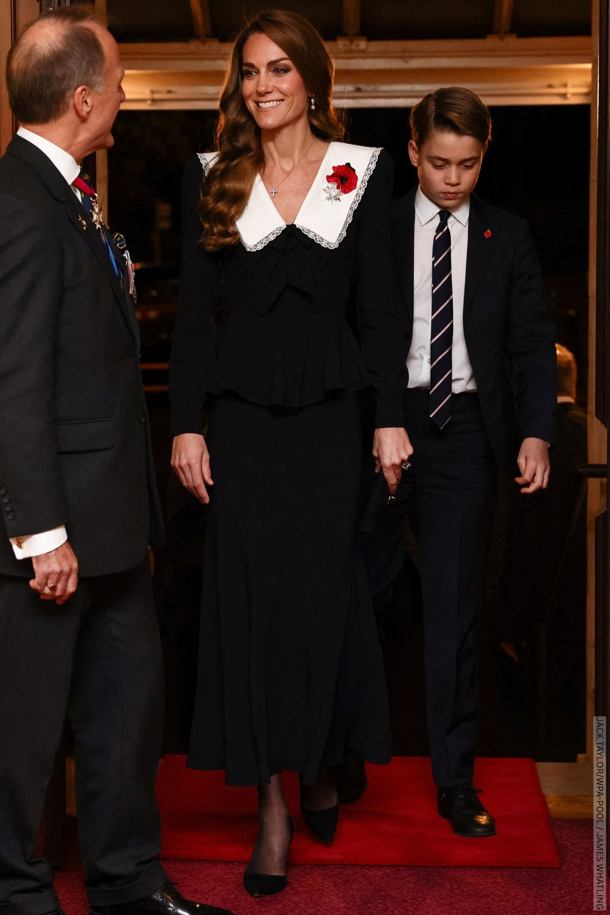 The Princess of Wales looked elegant in a black dress by Alessandra Rich, worn with a handmade poppy. More on the fashion later in the post.