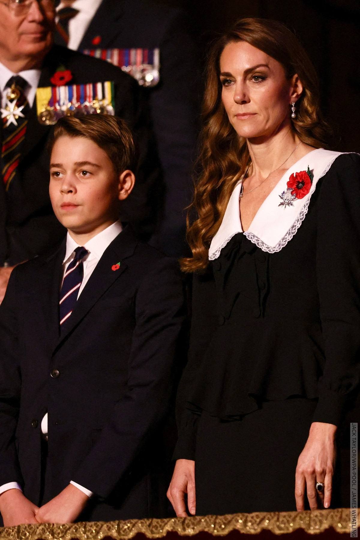 We could identify her earrings though—the ‘Bahrain pearl drops’ that originally belonged to Queen Elizabeth II—a fitting nod to royal tradition during the Remembrance weekend.