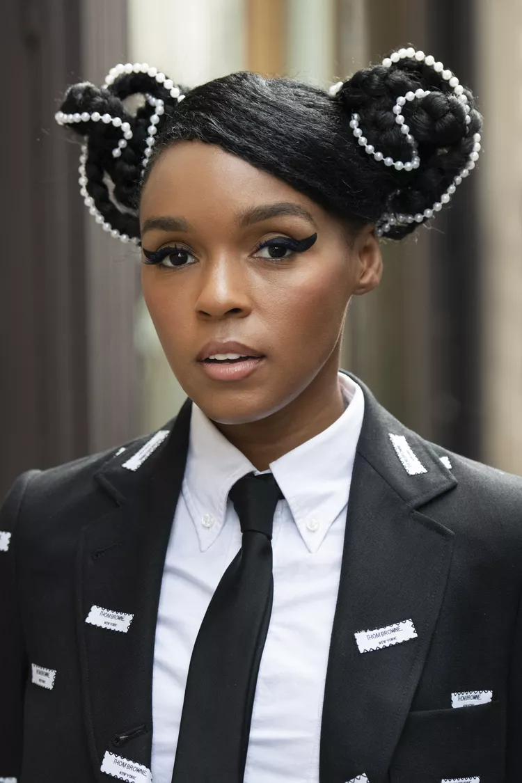 Braided space buns introduce instant texture. Instead of wrapping loose ponytails, each section is braided first and then coiled into a bun for a more detailed, dimensional finish.
