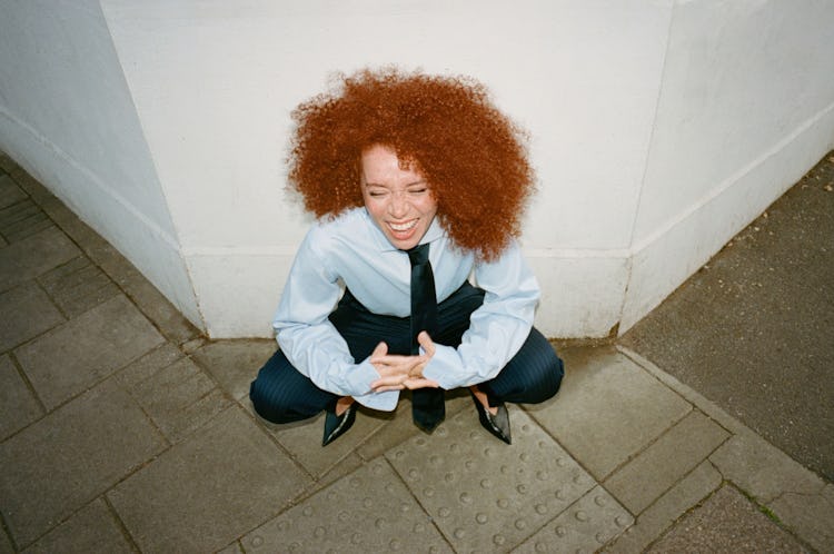 Modeling, it turned out, wasn’t for her either. Despite her striking auburn curls and made-for-a-closeup freckles, she was too anxious to handle the attention that comes with being photographed for a living. “I hated being on show,” she says. Disappearing into a character, though, was a very different proposition. When a 13-year-old Kellyman attended a casting session where she and her fellow models were asked to improv a classroom scene, something finally clicked. “I came out of the room absolutely ecstatic,” she recalls. “I was like, ‘That wasn’t the same as the modeling auditions. I want to do that.’” By 15, she had booked her first role as a series regular on Raised by Wolves, the British sitcom from Caitlin and Caroline Moran.