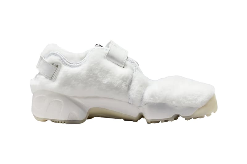 At first glance, the upper’s soft, white, hairy fur exudes cozy, winter-ready warmth, creating a striking contrast with the sleek lines of the Air Rift silhouette. Yet the design goes far beyond minimalism. Subtle leather trims along the lining and buckle areas, metallic accents on the straps, and delicate Nike embroidery on the back strap reveal layers of careful detailing. Together, these elements showcase Nike’s meticulous craftsmanship while honoring the understated sophistication intrinsic to Japanese design.